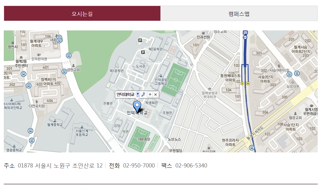 <그림중 인덕대학교라고 표기된 위치가 인관입니다>